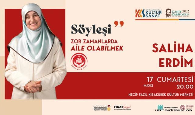 17 Mayıs Cumartesi günü gerçekleştirilecek söyleşinin konuğu, aile danışmanı ve yazar Saliha Erdim olacak. “Zor Zamanlarda Aile Olmak” başlığıyla düzenlenecek program, saat 20.00’da Necip Fazıl Kısakürek Kültür Merkezi’nde başlayacak.