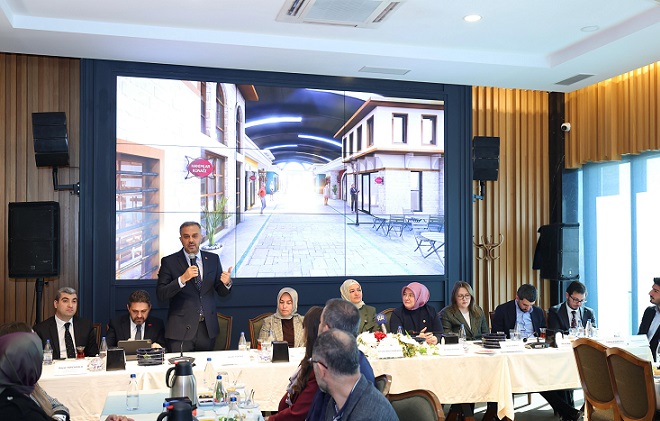 Başkan Toptaş, Fatma Betül Sayan Kaya’ya Onikişubat Belediyesi’nin kadınlara yönelik yürüttüğü projelerin detaylarını içeren bir sunum gerçekleştirdi. Kadın Emeği Çarşısı, Gastronomi Merkezi, Seramik Atölyesi ve İş Geliştirme Merkezleriyle ilgili tanıtım materyallerinin yer aldığı sunum, katılımcılardan büyük ilgi gördü.
