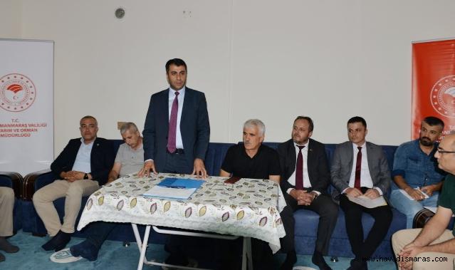 Bu kapsamda ilk olarak Afşin İlçesine bağlı Anzorey Mahallesinde İl Müdürü Ramazan Bilir'in koordinatörlüğünde İl Müdür Yardımcısı Salih İnan, Koordinasyon ve Tarımsal Veriler Şube Müdürü Sadık Yılmaz Güllü, Kırsal Kalkınma ve Örgütlenme Şube Müdürü Mikdat Kasal, Çayır Mera ve Yem Bitkileri Şube Müdürü Şeyda Uluer, Afşin İlçe Müdürü Muhammet Kayapınar, AK Parti İl Yönetim Kurulu Üyesi Mutlu Bolat, Afşin Ziraat Odası Başkanı İbrahim Emiroğlu, Anzorey Mahallesi Muhtarı Önder Kuşcu, teknik personel ve üreticilerin katılımıyla istişare ve bilgilendirme toplantısı gerçekleştirildi.