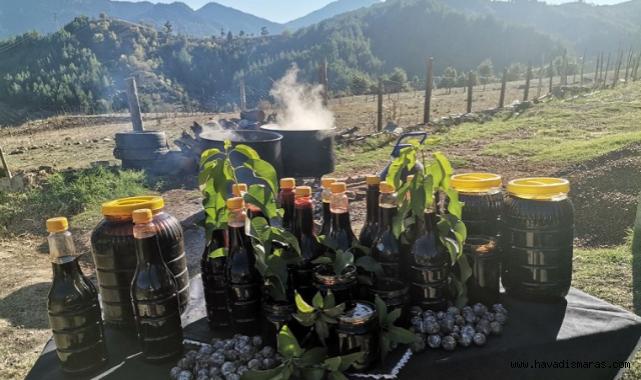 Kahramanmaraş /Andırın (SHA) - Kahramanmaraş'ın Andırın ilçesi Elmadağ bölgesinde, benzersiz ve sağlıklı bir doğal ürün olan andız pekmezinin üretimi için hasat çalışmaları başladı.