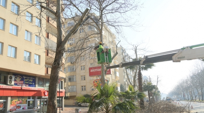 Bahar hazırlığı çalışmaları kapsamında bir taraftan ağaçlarda budama yapılırken, bir taraftan da mevsimlik çiçek dikimleri yürütülüyor.