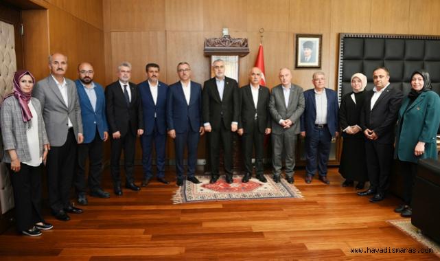 Kahramanmaraş Büyükşehir Belediye Başkanı Hayrettin Güngör, bir dizi temaslarda bulunmak üzere şehre gelen Çalışma ve Sosyal Güvenlik Bakanı Prof. Dr. Vedat Işıkhan’ı makamında ağırladı. Gerçekleştirilen ziyarette; Vali Ömer Faruk Coşkun, AK Parti Kahramanmaraş Milletvekilleri Prof. Dr. Vahit Kirişci, Dr. Tuba Köksal, Ömer Oruç Bilal Debgici ve Prof. Dr. Mehmet Şahin, ilçe belediye başkanları, meclis üyeleri ile siyasi parti ve STK temsilcileri de yer aldı. Başkanlık makamında gerçekleştirilen ziyaret, Meclis Toplantı Salonu’nda iş insanları ile düzenlenen toplantıyla devam etti.