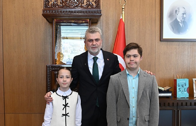 Temsili devir teslim töreni, bayramın ruhuna yakışır şekilde samimi ve renkli görüntülere sahne oldu. Minik başkan Erva Zehra Boyraz’a teslim töreninde; kuzeni özel gereksinimli şampiyon yüzücü Sertaç Tahsin Boyraz, okul müdürü Duran Gül ve öğretmenleri de eşlik etti.