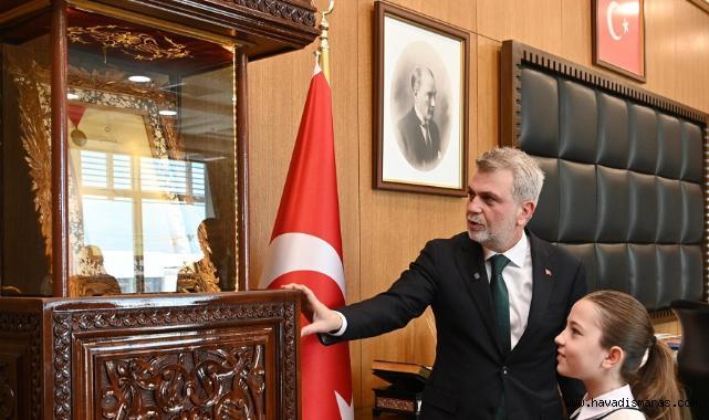 Büyükşehir Belediye Başkanı Fırat Görgel, bu özel günde makam koltuğunu Şehit Fatih Gök İlkokulu 4. sınıf öğrencisi Erva Zehra Boyraz’a devretti.