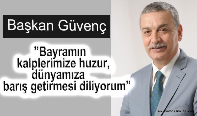 Başkan Güvenç, mesajında şunları söyledi: “Kurban Bayramınızı en kalbi duygularımla tebrik ediyor; bu mübarek bayramın, milletimiz, İslam Âlemi ve bütün insanlığa hayırlar getirmesini, kurtuluşumuza vesile olmasını Allah'tan diliyorum. Mübarek bayram günlerinin, milletimizle birlikte tüm İslam âlemine ve insanlığa hayırlar getirmesini niyaz ediyorum.
