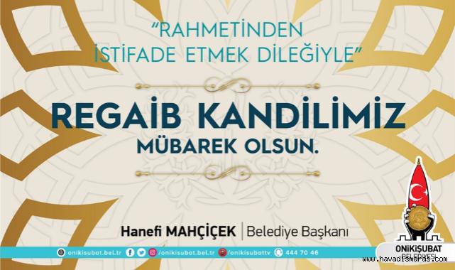 Onikişubat Belediye Başkanı Hanefi Mahçiçek, halk arasında ‘üç aylar’ olarak bilinen Recep, Şaban ve Ramazan aylarına girilmesi ile Perşembe gününü Cuma’ya bağlayan gece idrak edilecek olan Regaib Kandili dolayısıyla mesaj yayımladı.
