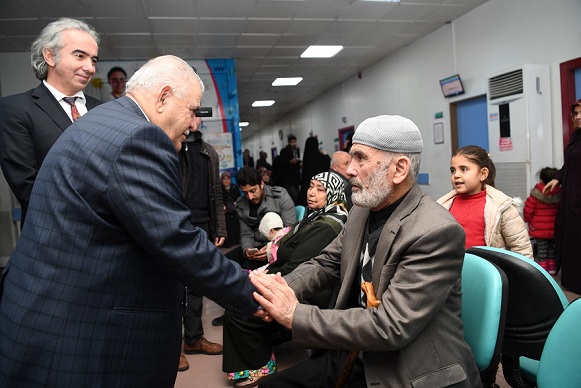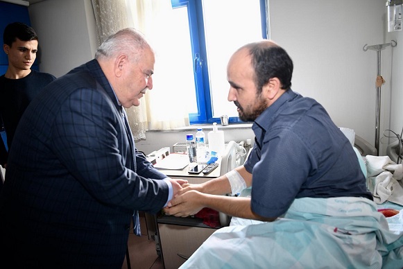 Hastalara moral depolamak amacıyla yapılan ziyarette, Başkan Mahçiçek’i karşısında gören hastalar ziyaretten duydukları memnuniyeti ifade ettiler.