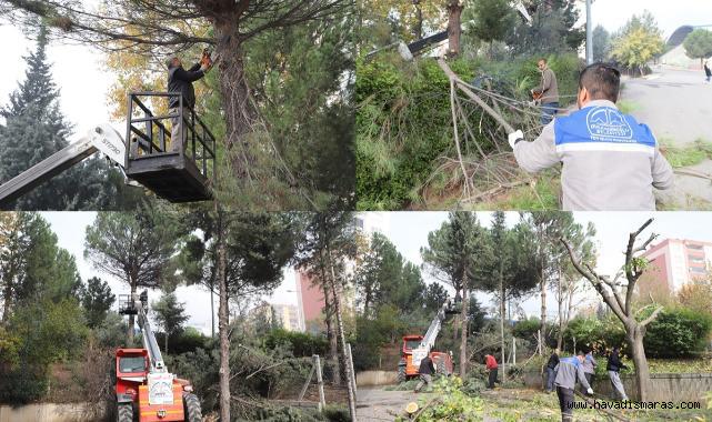 Dulkadiroğlu Belediyesi Fen İşleri Müdürlüğü ekipleri park ve bahçelerde çalışmalarını yoğunlaştırdı. Ağır kış şartları öncesinde parkların bakımını yapan ekipler, ilçe genelinde bulunan tüm parklarda budama çalışması başlattı. Bu çalışmalarla zorlu kış aylarında ağaçların hem zarar görmemesi, hem de çevreye zarar vermemesinin hedeflendiği bildirildi.
