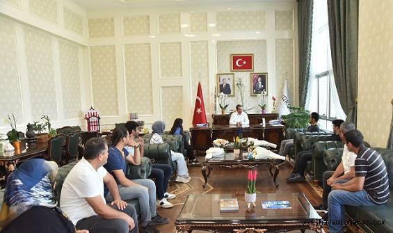 Öğrencileri Başkanlık makamında ağırlayan Türkoğlu Belediye Başkanı Osman Okumuş; "Her alanda desteğimizi esirgemediğimiz gençlerimiz, bizim en büyük hazinemiz.Gururla kendilerini tebrik ettim. Geleceğin doktorları misafirimizdi.