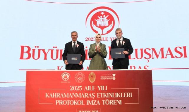 Büyükşehir Belediyesi tarafından düzenlenen Büyük Aile Buluşması programına katılan Aile ve Sosyal Hizmetler Bakanı Mahinur Özdemir Göktaş, “Bugünkü buluşmamız, geleceğimiz için güçlü bir adımdır. Bu etkinlik, yüzyıllara dayanan birlik ve beraberlik ruhumuzun bir yansımasıdır” dedi. Programda; Bakan Göktaş, Vali Ünlüer ve Başkan Görgel ile 2025 Aile Yılı Kahramanmaraş etkinlikleri protokolü imzalandı.