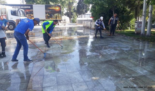 Büyükşehir Belediyesi, Kahramanmaraşlıların bayramlarını daha hijyenik ve huzurlu bir ortamda eda edebilmeleri için şehir genelinde temizlik ve dezenfeksiyon çalışmalarını kesintisiz sürdürüyor.