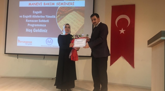 Kahramanmaraş Büyükşehir Belediyesi Engelli Hizmetleri Şube Müdürlüğü ve İl Müftülüğü işbirliğinde Kültürpark Konferans Salonu’nda gerçekleştirilen programda İl Müftülüğü Aile ve Dini Rehberlik Bürosu Vaizi Songül Haktan tarafından Ramazan sohbeti sunuldu.