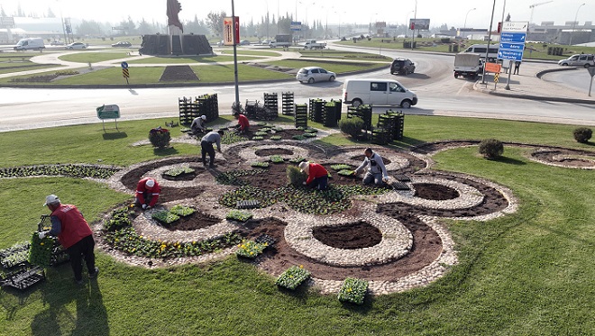 Kent Estetiği ve Yeşil Alanlar Dairesi Başkanlığı koordinesinde başlatılan çalışmalar kapsamında, şehrin ana arterlerinde bulunan büyük kavşaklarda kapsamlı bir peyzaj uygulaması hayata geçiriliyor.