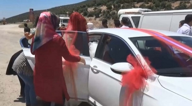 Menderes Mahallesi'nde yapılacak düğün için konvoy eşliğinde eşini almaya giden damat Cuma Atalay, düğün konvoyu ilerlerken arabanın bozulduğunu belirterek çekici çağırdı.