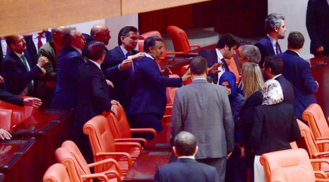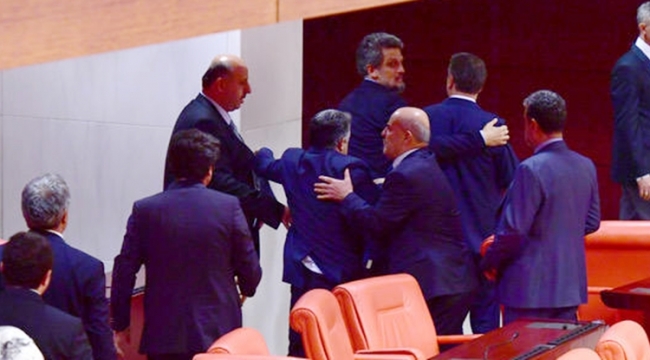 TBMM’de gece teşvik torba yasası görüşmelerinde, TSK’nın Afrin’de sivilleri öldürüyor’ açıklamalarıyla YPG sözcülüğü yapan HDP Milletvekili Mahmut Toğrul’un üzerine yürüyen Ak Parti Kahramanmaraş Milletvekili M. Uğur Dilipak HDP’lilere haddini bildirdi. Yaşanan kargaşada iki HDP milletvekilinin yaralandığı öğrenildi.
