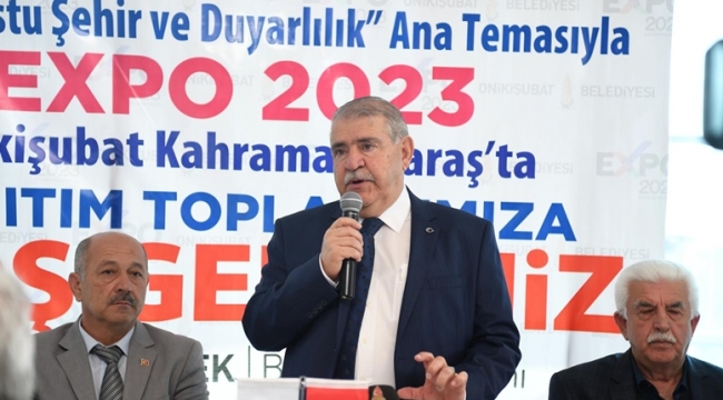 Konuşmasında EXPO ile ilgili bilgiler aktaran Başkan Mahçiçek, olimpiyatlardan sonra evrensel çapta önem arz eden organizasyonlar olduğunu belirterek, Antalya EXPO’dan sonra Türkiye’de yapılacak en büyük 2. organizasyon olacağını söyledi. EXPO 2023 projesi ile Kahramanmaraş’a en az 2 Milyon ziyaretçi beklediklerini belirten Başkan Mahçiçek, kentte tanıtım eksikliğinin yaşandığını ve bu kapsamda da bugüne kadar yaşanan ve hissedilen bu açığı tamamlayacaklarını söyledi.