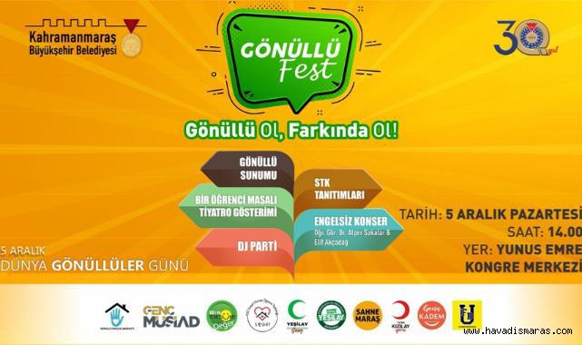 Kahramanmaraş Büyükşehir Belediyesi, 5 Aralık Dünya Gönüllüler Günü kapsamında farkındalık oluşturmak için ‘Gönüllü Fest’ etkinliği düzenleyecek.