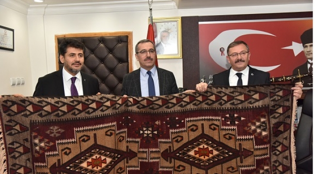 Başkan Aydın, ziyaretin anısına Güngör'e el dokunması Göksun Kilimi hediye etti.