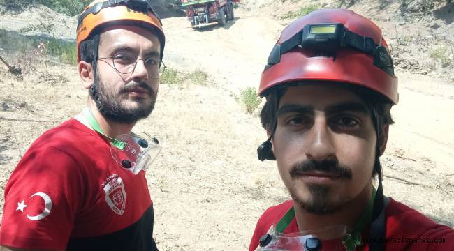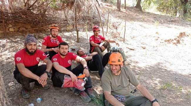 Soğutma çalışmalarının sürdüğü bölgeye giden Kahramanmaraş İHH Arama Kurtarma ekibindeki genç gönüllüler, sarp kayalıklardan 2-3 kilometre uzunluğundaki hortumları taşıyarak yangın soğutma çalışmalarına yardım ediyor.