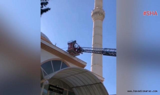 Kahramanmaraş'ta cami kubbesinde mahsur kalan kedi kurtarıldı