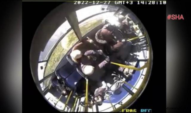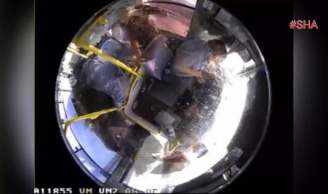Kaza anı otobüs içerisinde yer alan güvenlik kamarasınca saniye saniye görüntülendi.