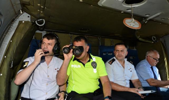 Helikopter destekli trafik denetimi, İl Jandarma Komutanlığı ve İl Emniyet Müdürlüğüne bağlı trafik ekipleriyle, trafik yoğun olduğu bölgeler başta olmak üzere ormanlık alanlar üzerinde gerçekleştirildi.