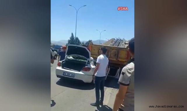 Kahramanmaraş’ta demir yüklü kamyona arkadan çarpan otomobil içerisinde bulunan 3 kişi yaralandı