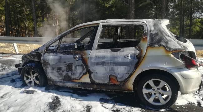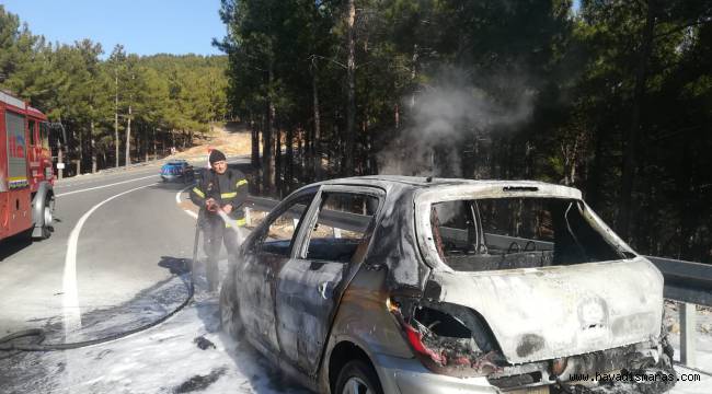 Kahramanmaraş’ta seyir halinde iken alev alan otomobil hurdaya döndü.