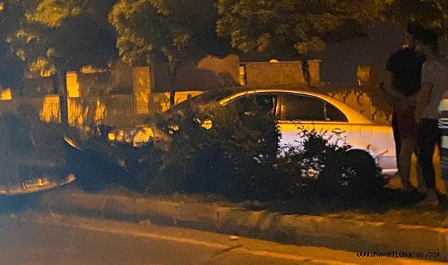 Kahramanmaraş’ta yola fırlayan köpeğe çarpmamak için manevra yapan otomobil orta refüje çarptı.