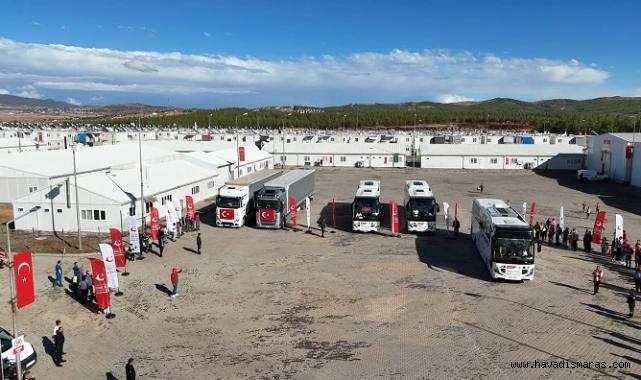 Kahramanmaraş Geçici Barınma Merkezi’nde düzenlenen törende, Gönüllü Geri Dönüş Koordinasyon Merkezi’ndeki işlemlerini tamamlayan Suriyeli sığınmacılar, yola çıktı.