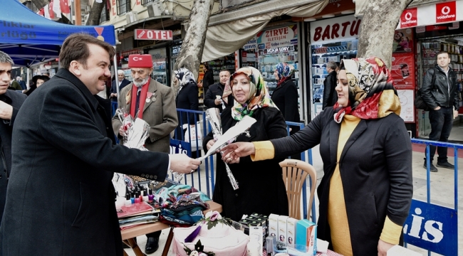 Standları tek tek gezerek kadınlara karanfil takdim eden Başkan Erkoç aynı zamanda onlarla sohbet ederek hayırlı işler dileklerinde bulundu.