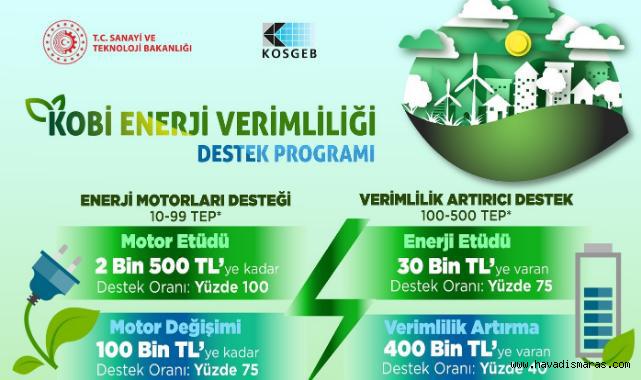 Yıllık enerji tüketimi 100-500 TEP aralığındaki işletmelerin; sanayi alanında yetkilendirilmiş EVD şirketlerinden alacakları enerji etüdü hizmeti ve motor değişimi, pompa değişimi, fan değişimi, kompresör değişimi ve değişken hız sürücüsü temini toplam 430.000 TL’ye kadar desteklenecektir. Böylece enerji sarfiyatı yüksek KOBİ’ler için de daha kapsamlı bir dönüşüm amaçlanmaktadır.