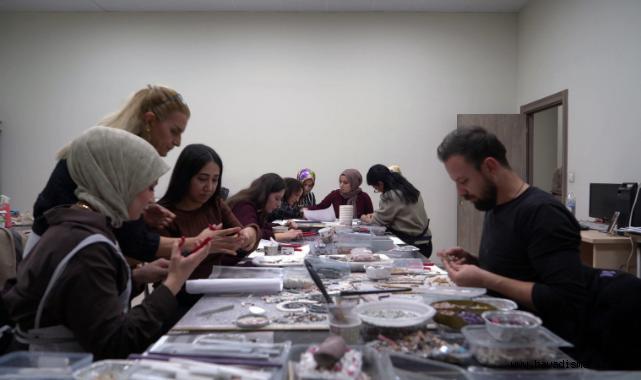 Ayrıca atölyede, cam, taş ve seramik gibi malzemeler kullanılarak yapılan uygulamalarla katılımcılar kendi eserlerini oluşturma fırsatı yakalıyor.