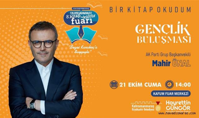 Kahramanmaraş 8. Uluslararası Kitap ve Kültür Fuarı’nda 21 Ekim Cuma günü usta kalemlerin yanı sıra AK Parti Grup Başkanvekili Mahir Ünal, gençlik buluşması ve konferans etkinliklerinde Kahramanmaraşlılarla bir araya gelecek.