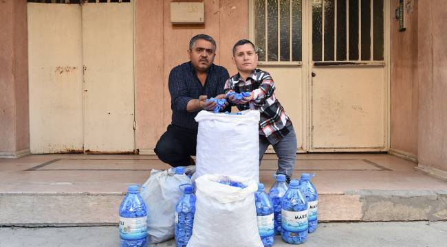 Dulkadiroğlu Belediyesi tarafından görevlendirilen engelli personel Oktay Uzunca, büyük bir gayretle vatandaşların topladığı mavi kapakları yerinde teslim alıyor.