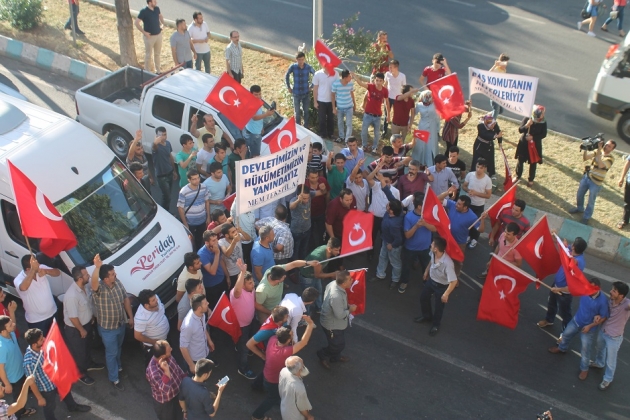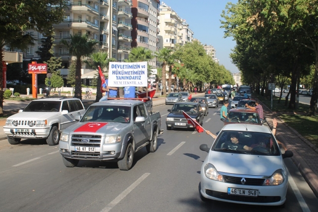 Fabrikada gündüz vardiyasının bitimi ile birlikte servis araçlarının direk olarak kız imam hatip okulu önünde buluşan Mem Tekstil Ailesi, Ellerinde Türk Bayraklarıyla uzun konvoy oluşturarak Demokrasiye katkılarını bildirdiler.