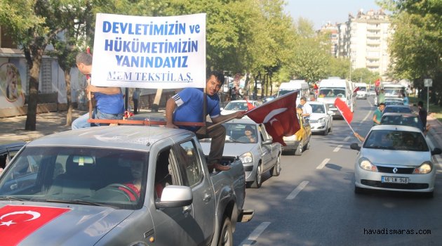 Mem Tekstil İşletme Müdürü Sait Yoldaş'ın önderliğinde Organize Sanayi ve Merkez İşletme Müdürleri ve personellerinin katılımı ile gerçekleşen Demokrasiye katkı Konvoyu renkli görüntüler oluşturdu.