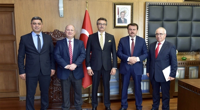 Ziyaretin sonunda Başkan Erkoç, ziyaretin anısına Devlet Eski Bakanı Kürşat Tüzmen ve Ersan Petrol Sanayi Yönetim Kurulu Başkanı Ecvet Sayer’e Maraş işi Bakır Kayık Tabak hediye ederek teşekkür etti.