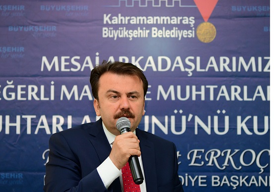 Daha sonra muhtar dernek başkanları mahallelere yapılan hizmetlerden dolayı Kahramanmaraş Büyükşehir Belediye Başkanı Fatih Mehmet Erkoç’a bir teşekkür plaketi sundular.