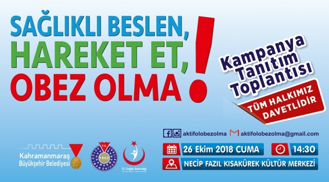 Büyükşehir Belediyesi son olarak Sütçü İmam Üniversitesi ve Sağlık İl Müdürlüğüyle ortaklaşa çalışma gerçekleştirerek bir kampanya düzenledi. “Sağlıklı beslen hareket et obez olma” ve “Kahramanmaraş yürüyor kilolar eriyor” sloganları ile Kahramanmaraş’ta obeziteye karşı farkındalık oluşturmak üzere düzenlenen kampanya için 26 Ekim Cuma günü saat 14.30’da Necip Fazıl Kısakürek Kültür Merkezinde bir tanıtım toplantısı gerçekleştirilecek.
