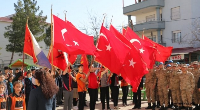 Kaymakam Aydın ve Başkan Bozdağ’ın, Atatürk anıtına çelenk sunumuyla başlayan program bir dakikalık saygı duruşu ve İstiklal Marşının okunmasıyla devam etti.