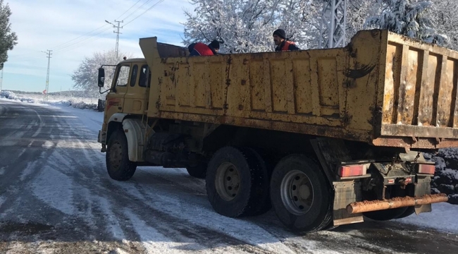 Belediye ekiplerince Kızkapanlı grup yolu olmak üzere ilçeye bağlı mahallerde kar yağışından dolayı buzlanan yollarda canı kaybına sebebiyet vermemek üzere sabahın erken saatlerinde tuzlama çalışmalarına başladı.