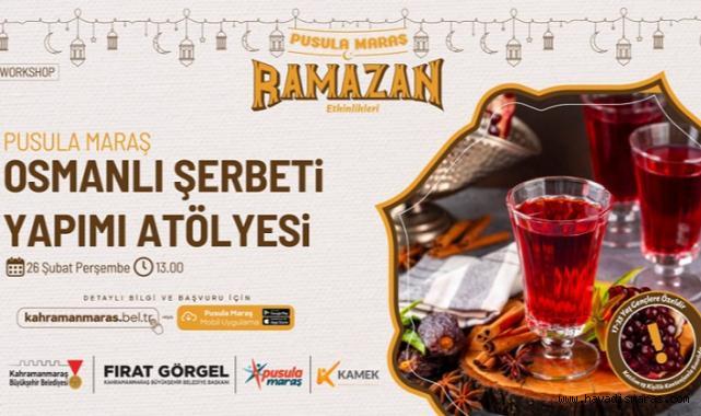 Kahramanmaraş Büyükşehir Belediyesinin gençlik markası Pusula Maraş, Ramazan ayına özel etkinliklerine bir yenisini daha ekliyor. Gençlerin sosyal, kültürel ve geleneksel değerlerle buluşmasını amaçlayan programlar kapsamında bu kez “Osmanlı Şerbeti Yapımı Atölyesi” düzenleniyor.