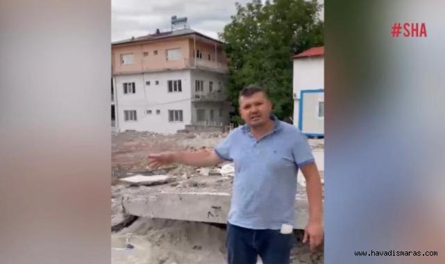 İlçeye bağlı Köprübaşı Mahallesi Hulusi Edendi Sokak üzerinde yer alan işyerinin 6 Şubat depremlerini az hasarlı atlattığını kaydeden işleme sahibi Osman Yücel, işyerinin yanında bulunan ağır hasarlı binanın yıkımı sırasında işyerine zarar verilerek yıkıldığını öne sürdü.