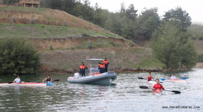 Kahramanmaraş İl Jandarma Komutanlığına bağlı Bot timi, Onikişubat ilçesi Hasancıklı Mahallesi, Kılavuzlu Su Sporları mevkiinde Gençlik Spor İl Müdürlüğünce düzenlenen kano yarışmalarında, yaşanabilecek kazalara karşı güvenlik çemberi oluşturdu.