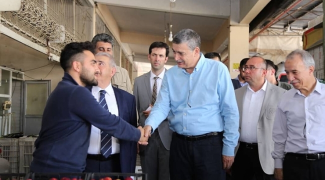 24 Haziran’da yapılacak olan Cumhurbaşkanlığı ve Milletvekilliği Seçimleri kapsamında çalışmalarını sürdüren Kahramanmaraş Milletvekili Adayı Celalettin Güvenç, AK Parti Kahramanmaraş Teşkilatıyla birlikte çalışmalara hız kesmeden devam ediyor. Bu kapsamda esnaflarla ve vatandaşlarla birebir görüşme yapan Güvenç’in bu seferki durağı Meyve ve Sebze Hali oldu. Hal’de ilk olarak Kabzımallar Odası Başkanı Halit Orhan ile görüşen Güvenç, daha sonra haldeki esnafları tek tek ziyaret etti.