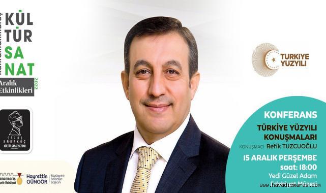 Etkinlik takvimi kapsamında 15 Aralık Perşembe günü, Cumhurbaşkanlığı Yerel Yönetim Politikaları Kurulu Üyesi Refik Tuzcuoğlu’nun katılımıyla ‘Türkiye Yüzyılı Konuşmaları’ temalı konferans gerçekleştirilecek. Yedi Güzel Adam Edebiyat Müzesi’nde düzenlenecek etkinlik saat 18.00’da başlayacak.