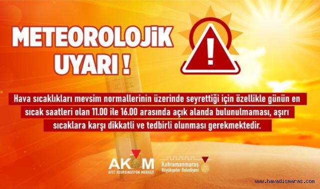 Kahramanmaraş Büyükşehir Belediyesi Afet Koordinasyon Merkezi, şehir genelinde etkisini artıran aşırı sıcaklara karşı vatandaşları uyardı.