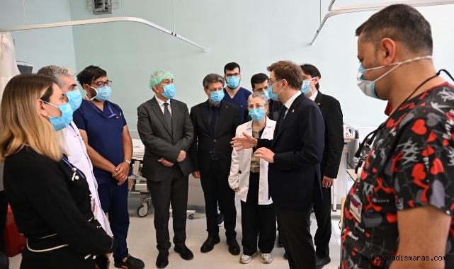 Kahramanmaraş Sütçü İmam Üniversitesi Rektörü Prof. Dr. İbrahim Taner Okumuş ve hastane yönetimi eşliğinde tedavi altındaki öğrencilerle bir araya gelen Yerebakan, yaralıların sağlık durumuna ilişkin yetkililerden bilgi aldı.